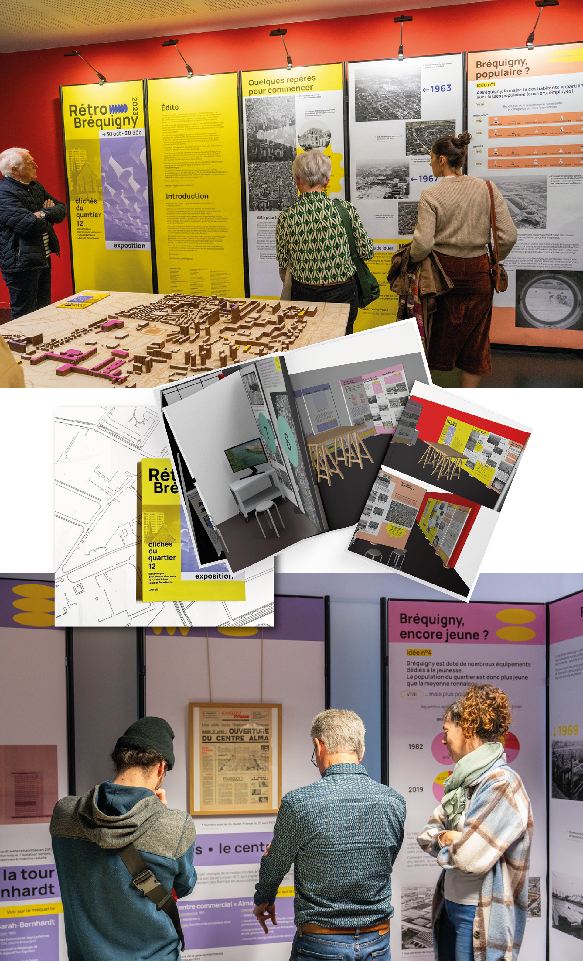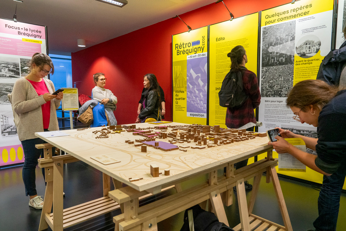 Travail de scénographie pour l'exposition "Rétro Bréquigny" porté par la Ville de Rennes et commissaires qui retrace l'histoire du quartier Bréquigny.